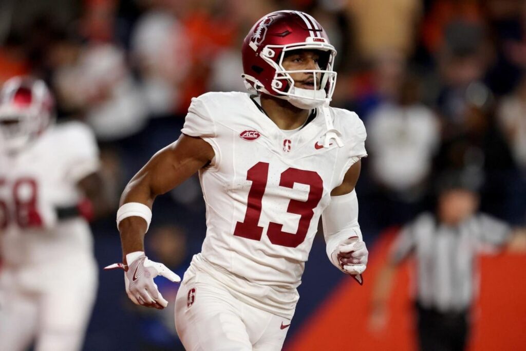 STANFORD, CALIFORNIA – NOVEMBER 25: Elic Ayomanor #13 of the Stanford Cardinal runs with the ball … [+]
