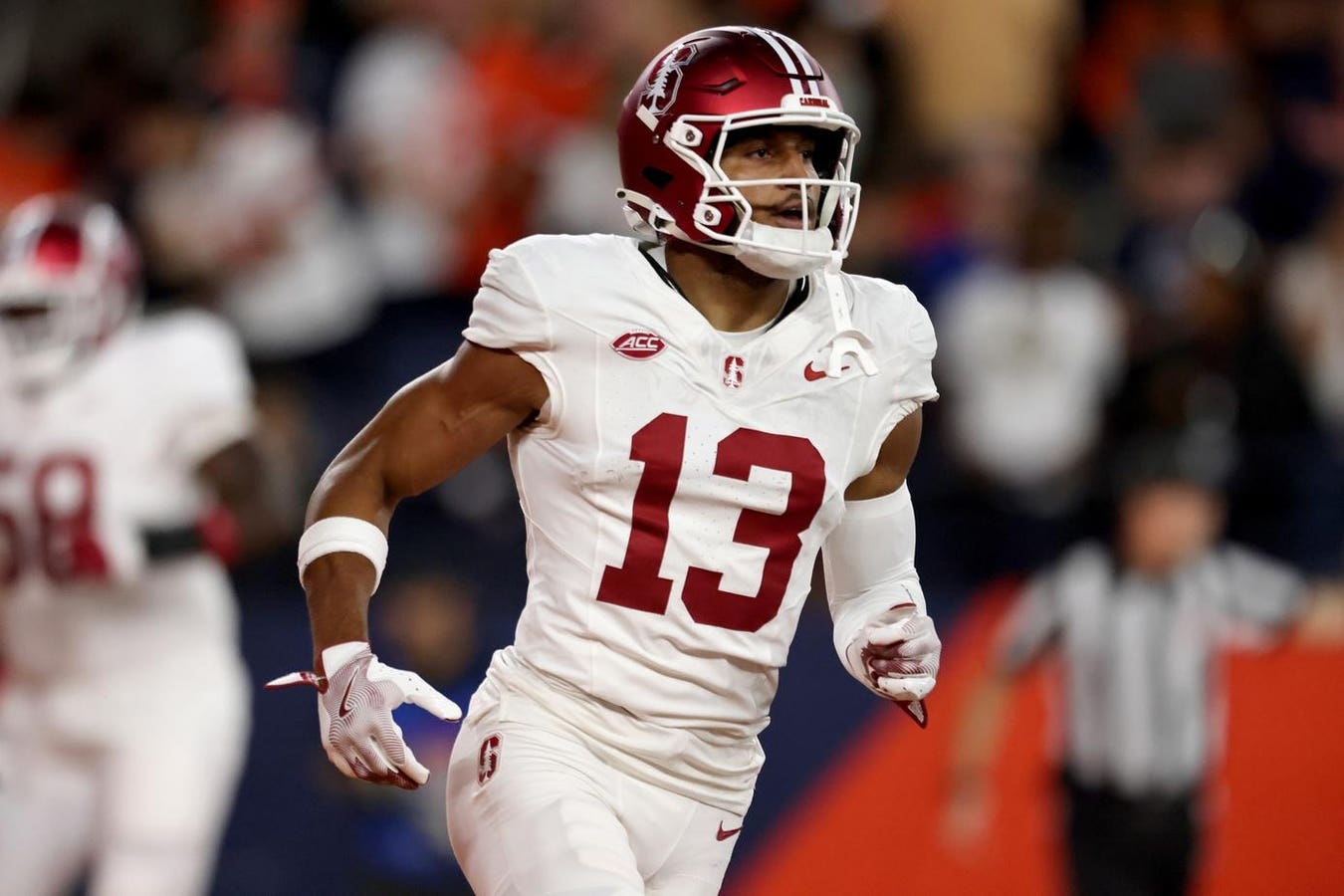 SYRACUSE, NEW YORK – SEPTEMBER 20: Elic Ayomanor #13 of the Stanford Cardinal looks on during the … [+]