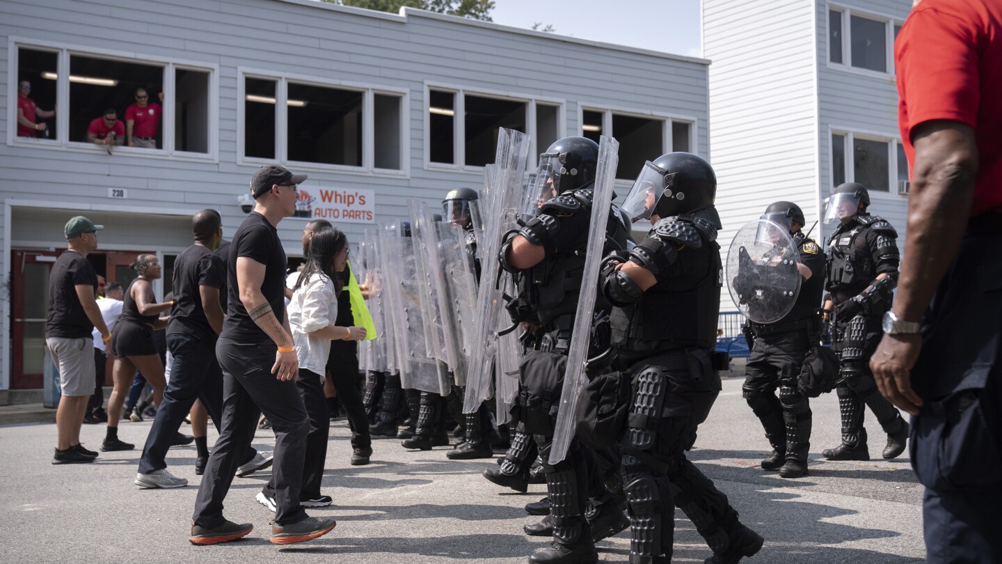 LAUREL, Md. (AP) — The car jolted as protesters pounded on its windows, boxing in the lawmaker trapped inside. Within seconds, officers in full riot gear surged forward in formation, yanking open the doors and pulling the passenger to safety. A few hundred yards away, another team of police moved just as quickly, surrounding, isolating and arresting a man spotted in the crowd with a gun.