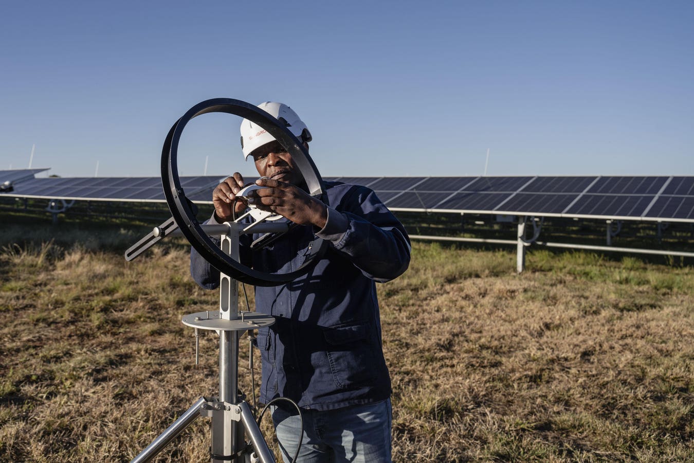 LICHTENBURG, SOUTH AFRICA – MAY 8: A man is seen near the Selemela Solar Power Plant is one of the … More
