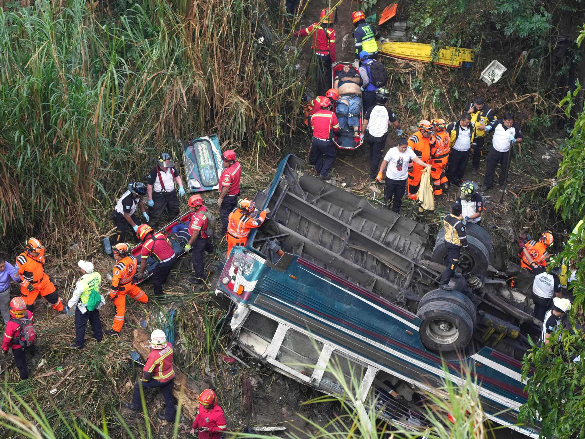 Footage shared by the fire department on social media showed rescue workers pulling victims out of the contaminated ravine. Images showed the bus upside down.