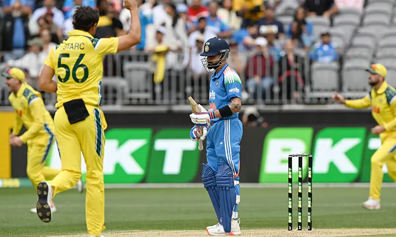 Neither looked convincing against Australia’s pace bowlers, with Rohit edging Josh Hazlewood to second slip on eight and Kohli cutting Mitchell Starc to a diving Cooper Connolly at backward point for an eight-ball duck.