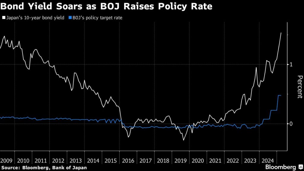 Benchmark 10-year government bond yields have surged to a 17-year high as the BOJ raised rates and pulled back from its massive bond purchases. That means the government will have to pay higher levels of interest on fresh debt and existing bonds that are rolled over.