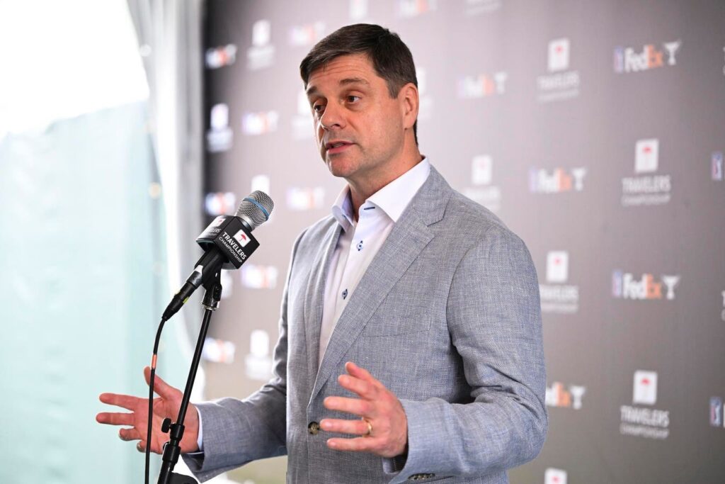 CROMWELL, CONNECTICUT – JUNE 17: PGA TOUR CEO, Brian Rolapp address the media during the PGA TOUR … More
