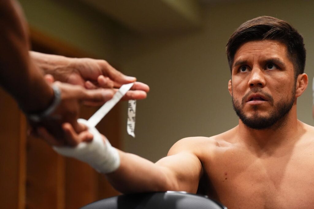 ANAHEIM, CALIFORNIA – FEBRUARY 17: Henry Cejudo has his hands wrapped prior to his fight during the … [+] UFC 298 event at Honda Center on February 17, 2024 in Anaheim, California. (Photo by Cooper Neill/Zuffa LLC via Getty Images)