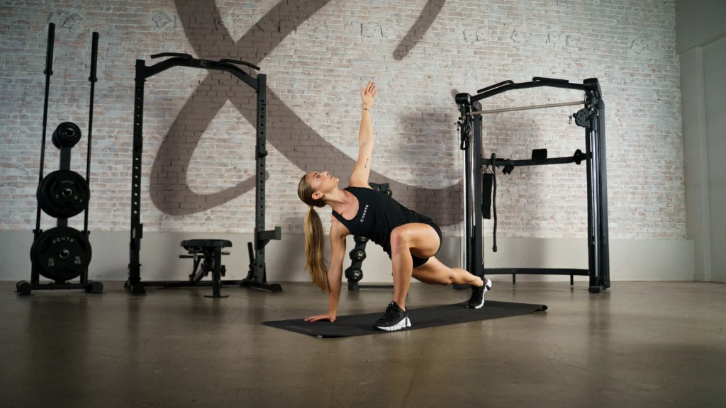 The Foundation integrates Centr’s strength equipment line, including kettlebells, dumbbells, a bench and Olympic barbell set.