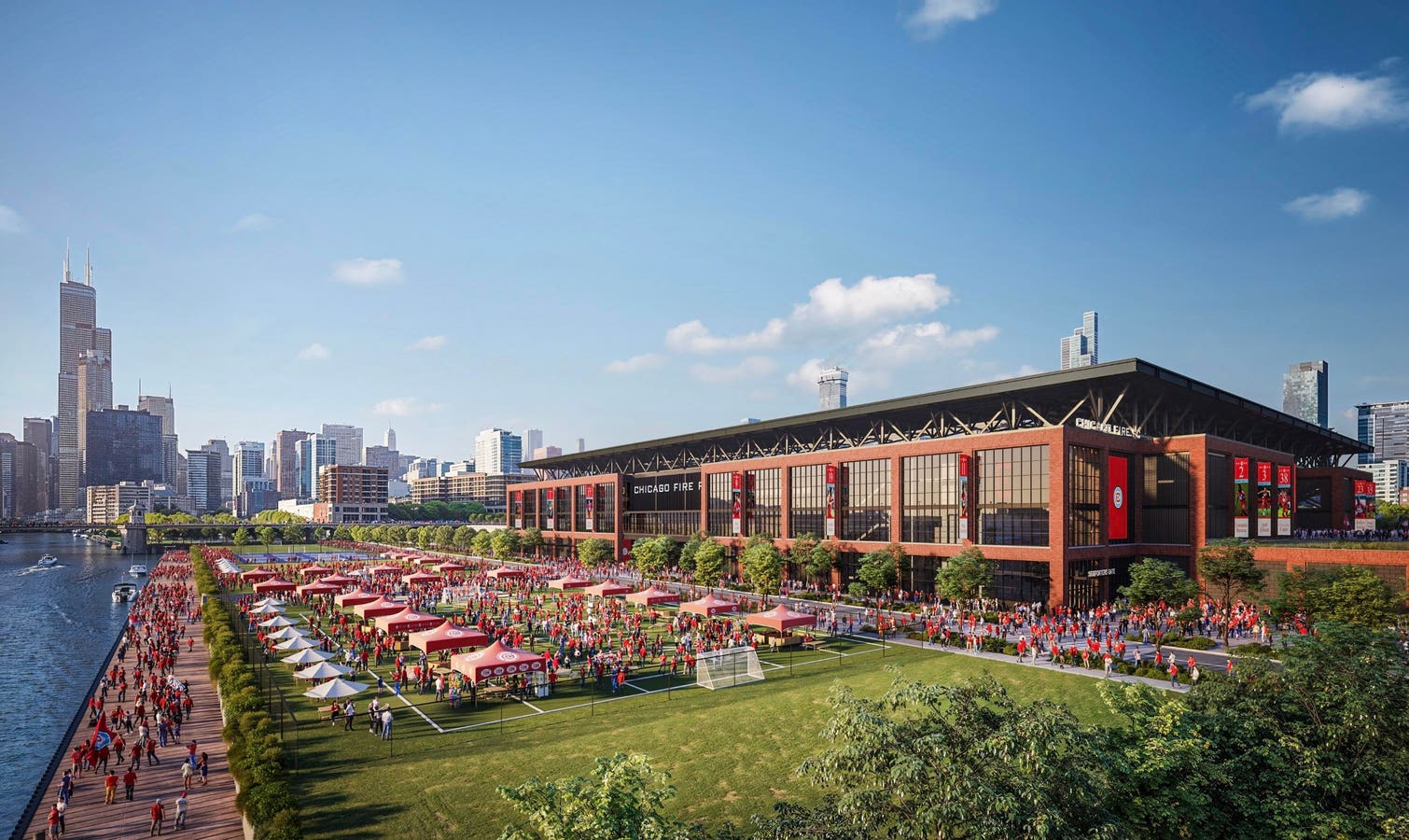 Located on the Chicago River, the Chicago Fire stadium will anchor a new mixed-use development.