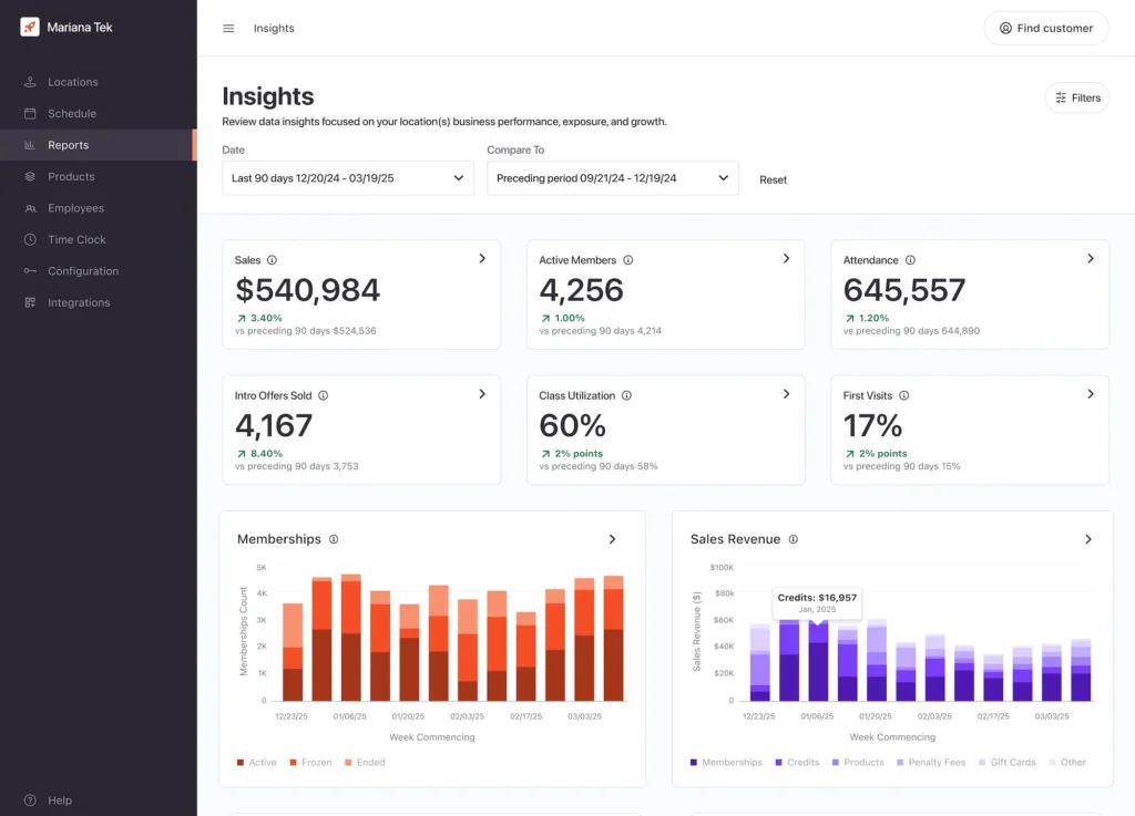Xplor Mariana Tek’s Insights 2.0 is designed to provide boutique fitness owners and operators with the agility to identify shifts in your business—be it shrinking class utilization or dwindling new member activations—and react in real time. And it starts with alleviating the headache of combing through numerous spreadsheets and mounds of data to identify relevant information.