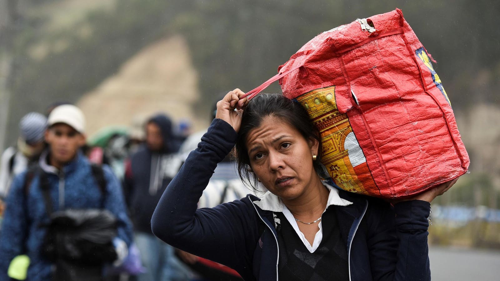 A Venezuelan woman heads to Peru and carries a bag as she walks along the Panamerican highway in … More Tulcan, Ecuador, after crossing from Colombia, on August 21, 2018. The Trump administration planned to end Temporary Protected Status for 350,000 Venezuelans so that it can deport them to Venezuela. A court has blocked the Trump administration decision to end TPS for Venezuelans. (LUIS ROBAYO/AFP via Getty Images)
