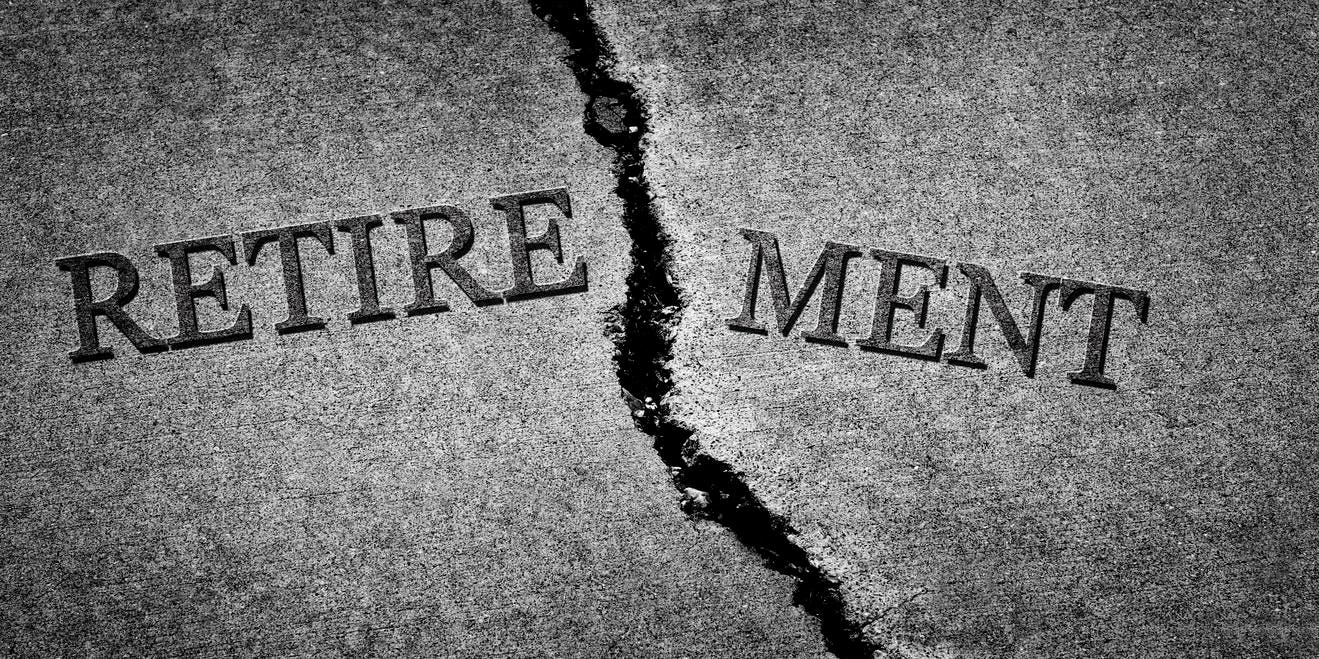 Old cracked sidewalk broken and dangerous cement symbol of no retirement failed system