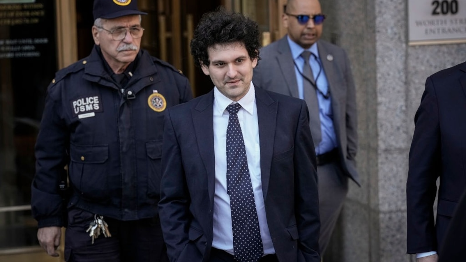 FTX founder Sam Bankman-Fried (C) departs Manhattan Federal Court after an arraignment hearing on March 30, 2023 in New York City. Federal prosecutors added a foreign bribery charge to the list of crimes that Bankman-Fried is already facing. The indictment accuses the FTX founder of directing $40 million in bribes to Chinese government officials to unfreeze assets related to his cryptocurrency business. (Photo by Drew Angerer/Getty Images)