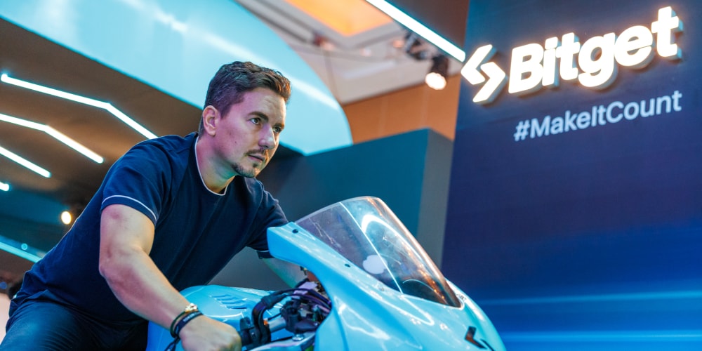 By the time he reaches Marina Bay Sands, TOKEN2049, one of the most prominent crypto conferences, is already in full throttle. The energy hits like pre-race tension, a symphony of clicking cameras and crypto chatter. Amid the chaos, Bitget’s booth stands out like a designer pop-up in Times Square — a giant race helmet shimmering under spotlights. Fans crowd around the MotoGP simulator, engines roaring through speakers. Jorge steps up, slips into the seat, , and for a moment, the line between motorsport and blockchain blurs. Cameras snap. Phones capture. It feels less like a crypto conference and more like an exhibition race — part performance, part experience.