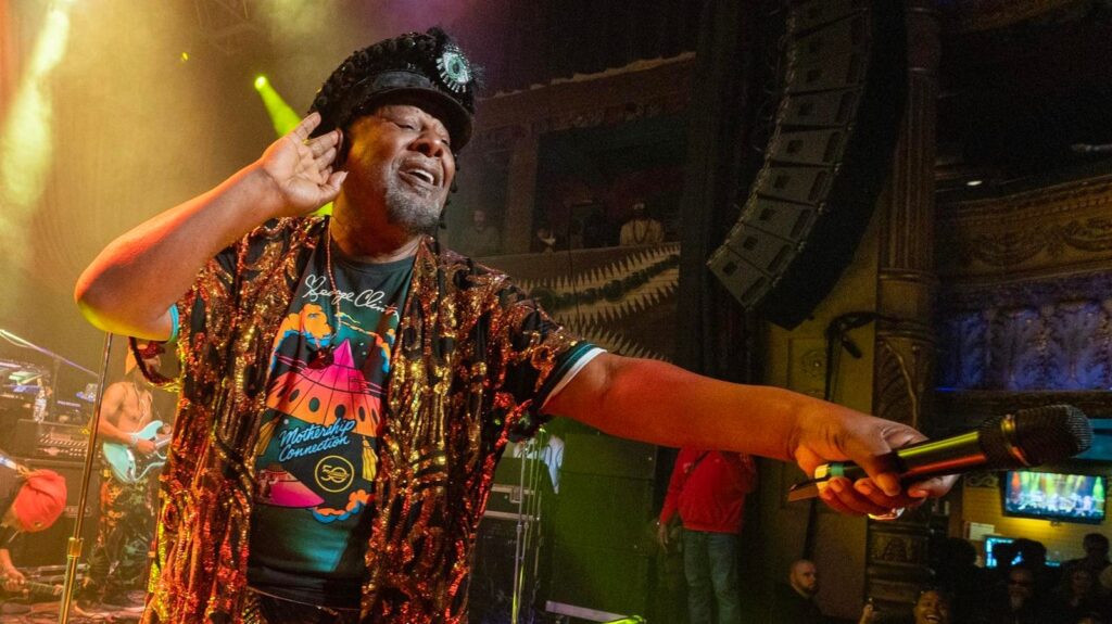 “Before we get started tonight, y’all feelin’ alright out there?” asked Detroit denizen Michael “Clip” Payne rhetorically in his guise as the evening’s narrator on stage at Chicago’s House of Blues. “Maybe some of you should know where your focal point is tonight. This guy has been doin’ it for over 65 years,” he continued, pointing to his right at Clinton, 83. “Dr. Funkenstein, Mr. Wiggles, Maggot Overlord, Uncle Jam,” said Payne, running down a lengthy list of nicknames for Clinton, with whom he’s worked since 1977. “For us, it’s simply granddad, uncle or cousin. My big brother. Everybody give it up for George Clinton!”