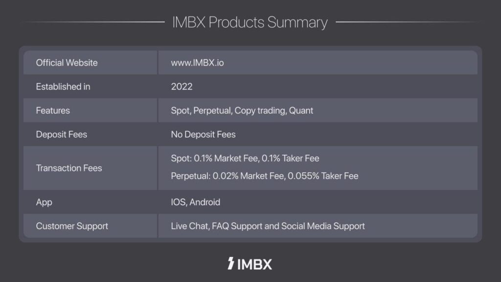 IMBX is a global cryptocurrency exchange platform that offers next-generation trading solutions for digital assets. The exchange provides a high-performance environment for spot and derivatives trading, underpinned by strong security practices and an intuitive user experience. IMBX’s mission is to leverage cutting-edge Web3 technology to make financial services more accessible and inclusive, bridging traditional finance with the innovative world of crypto. For more information, users can visit the IMBX official website or follow IMBX on X