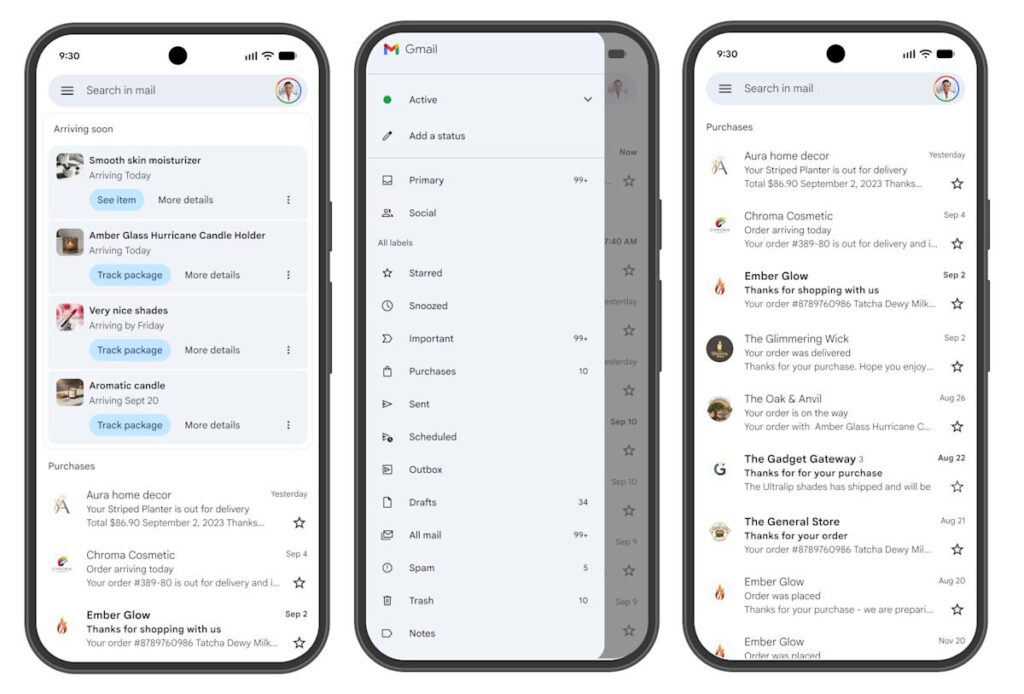 Google is rolling out an update for Gmail on mobile and the web that will make it easier to track emails for your deliveries. The most prominent change you’ll see is a new Purchases tab, where Gmail will put all your delivery emails so you can view them in one place. In the app, you’ll be able to access the new view via the side menu. Just click the hamburger icon in the text box at the top of the interface.
