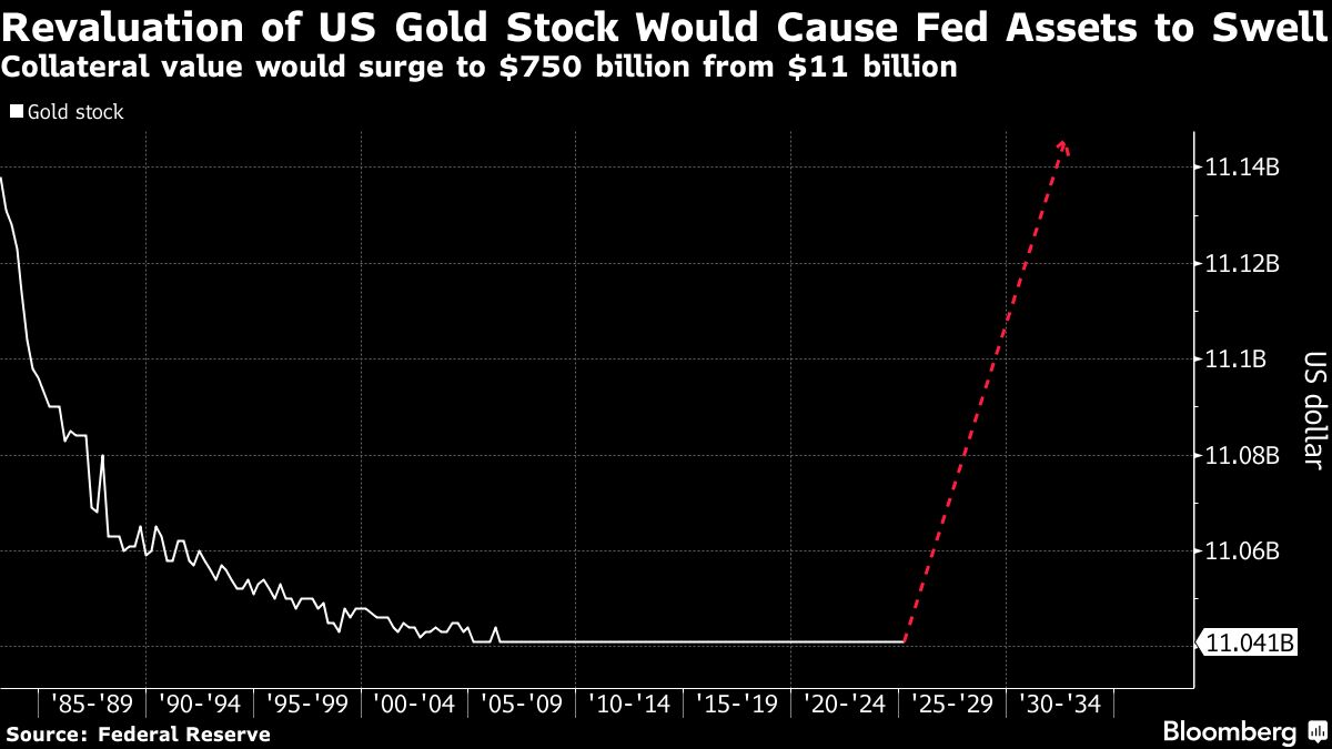 Treasury is allowed to pledge its holdings of physical gold to the Fed in exchange for cash. The proposal, which was also floated in 2023, centers around the idea that the government should revalue gold reserves from the $42.22 per ounce — the legacy Bretton Woods price — to market value. That would put the collateral value of the Treasury’s gold reserves at roughly $750 billion, up from about $11 billion, according to Wrightson ICAP.
