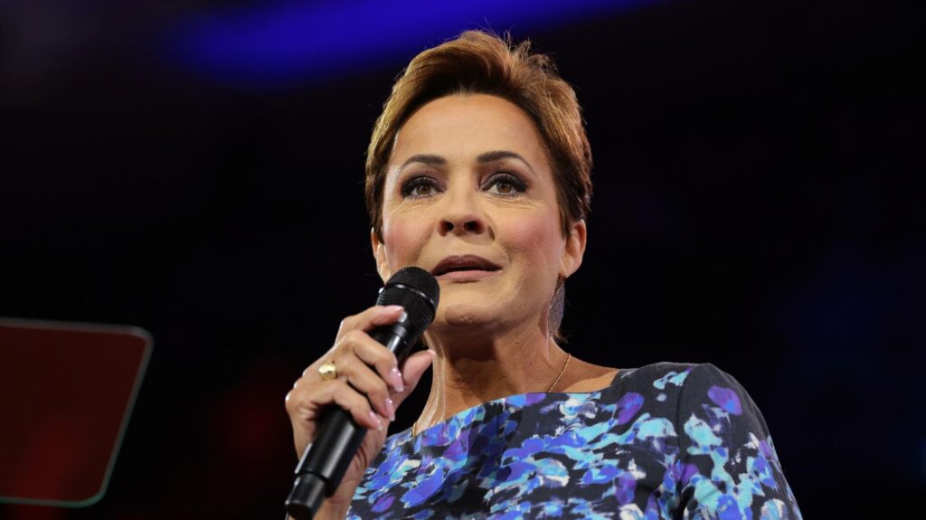 Kari Lake, who leads Voice of America (VOA), speaks at the Conservative Political Action Conference … More (CPAC) on February 21 in Oxon Hill, Maryland.