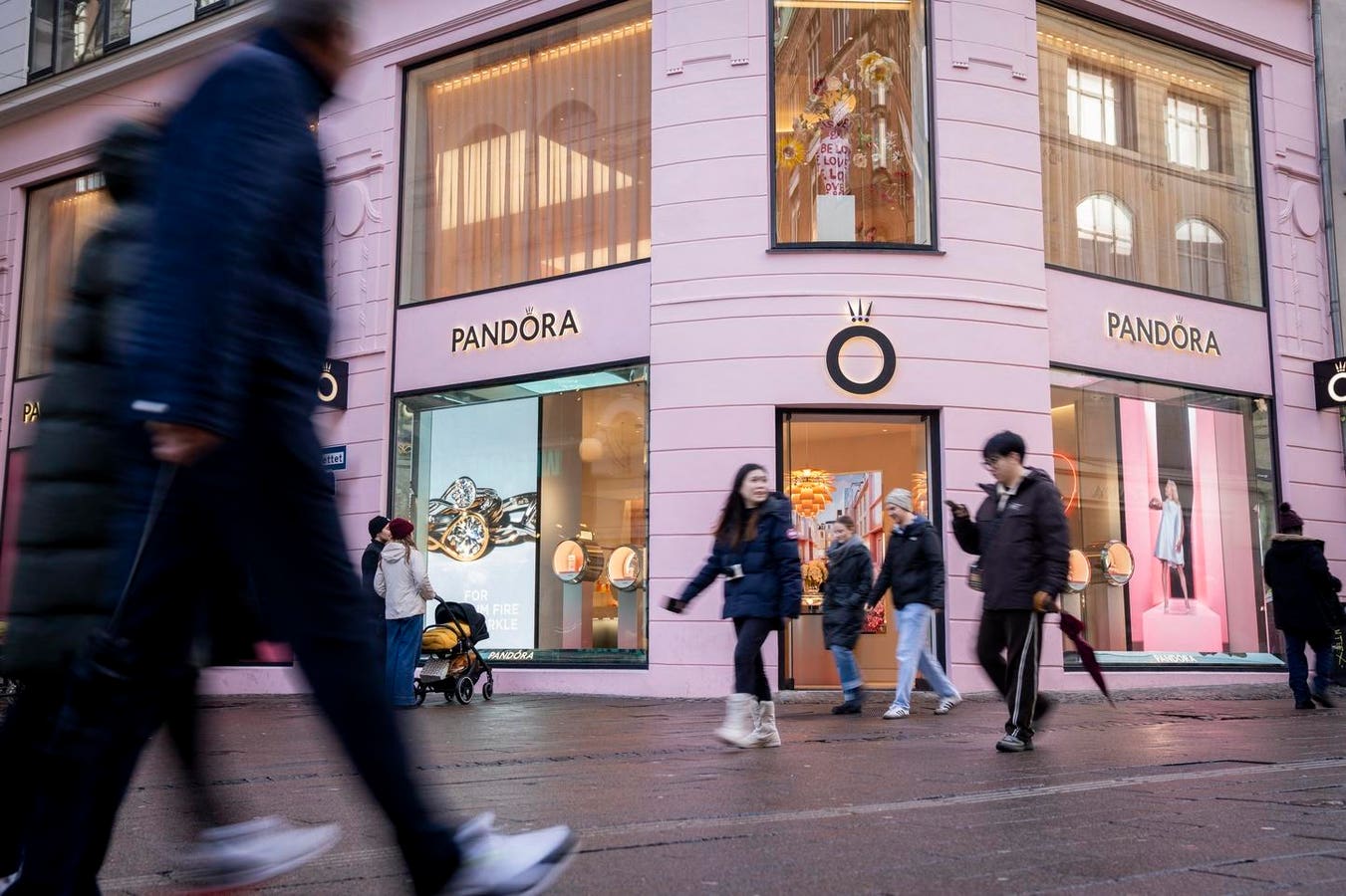 People walk past a store of Danish international jewellery company Pandora in Copenhagen, Denmark, … [+]