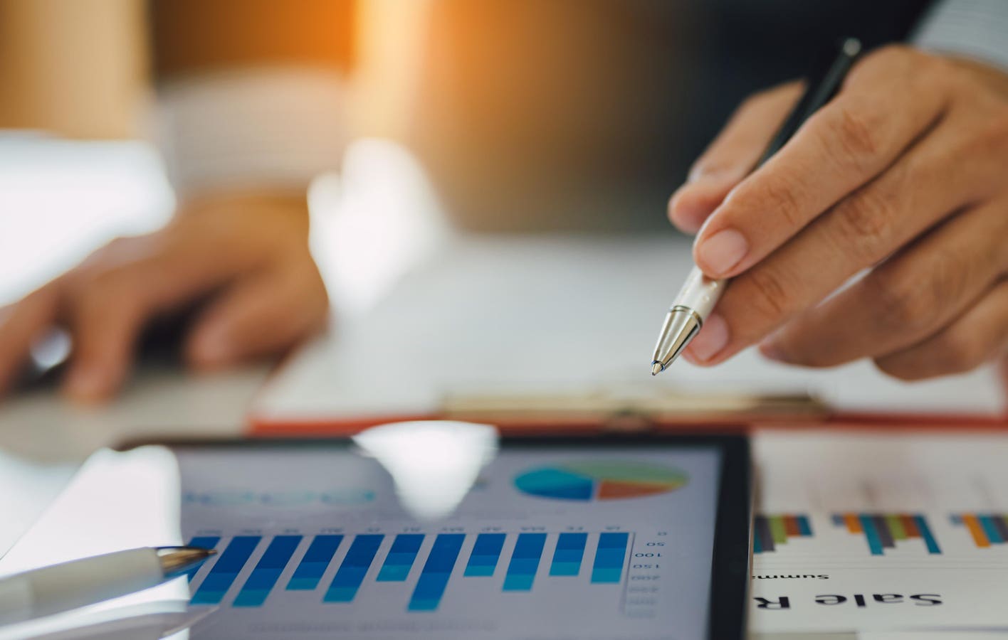 businessman working on SWOT analysis of company project financial report with documents graph at … [+]