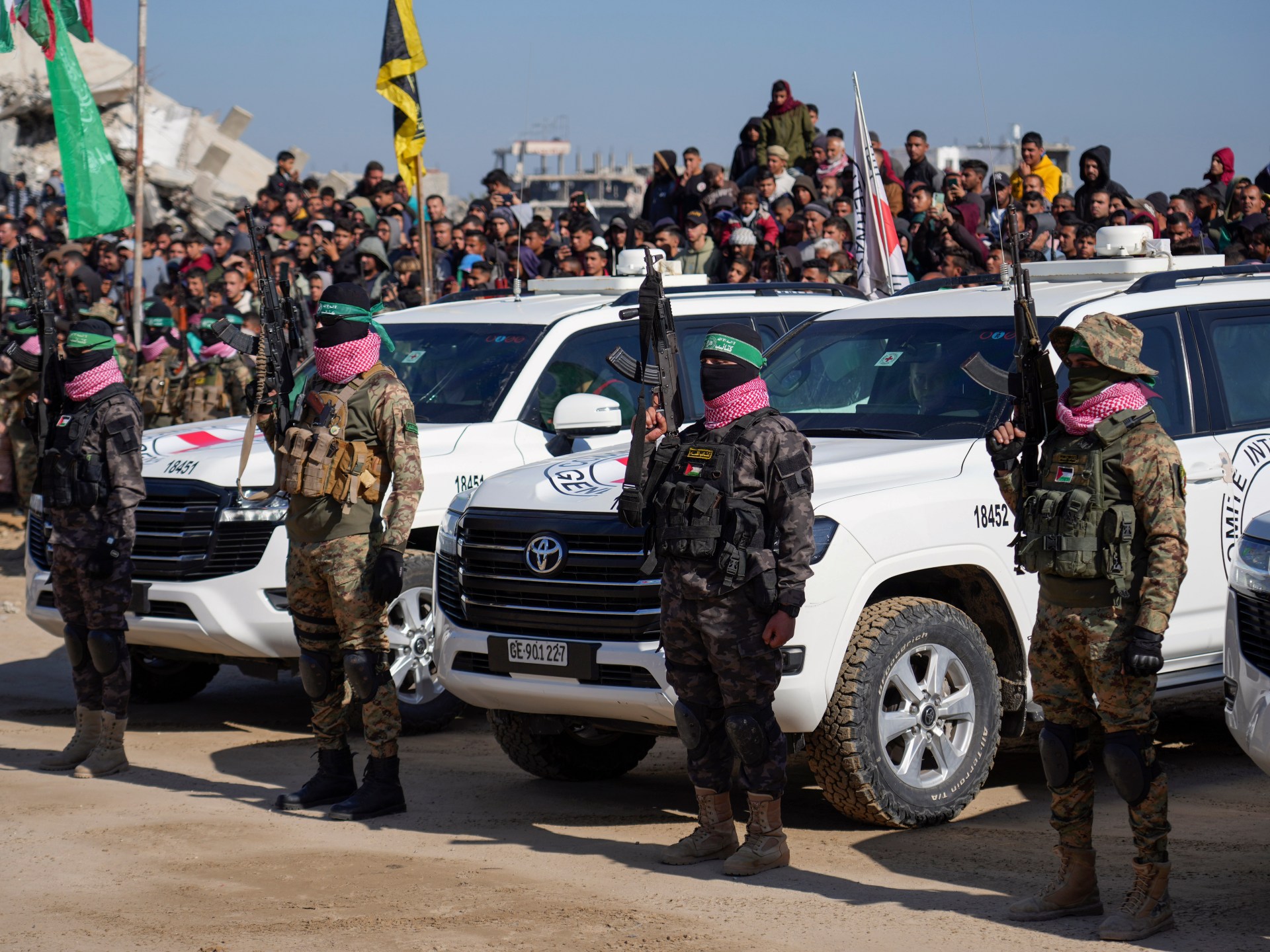 Dozens of armed Hamas and Islamic Jihad fighters guarded the square where the handover took place. Hundreds of Palestinian civilians, including women, children and the elderly, gathered behind the security cordon trying to witness the release.