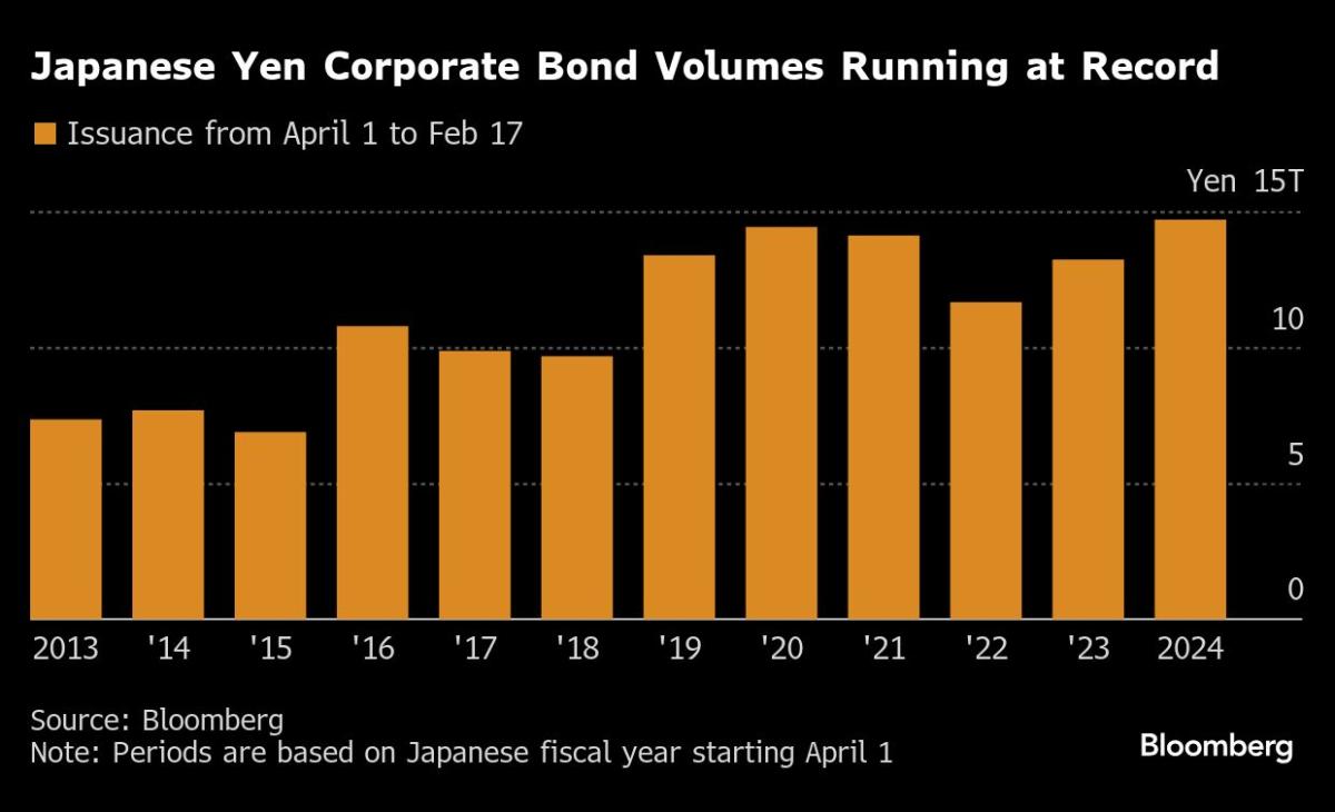 (Bloomberg) — Japan’s corporate bond market is booming, as an economic rebound and plans to get ahead of higher interest rates encourage a flurry of issuance.