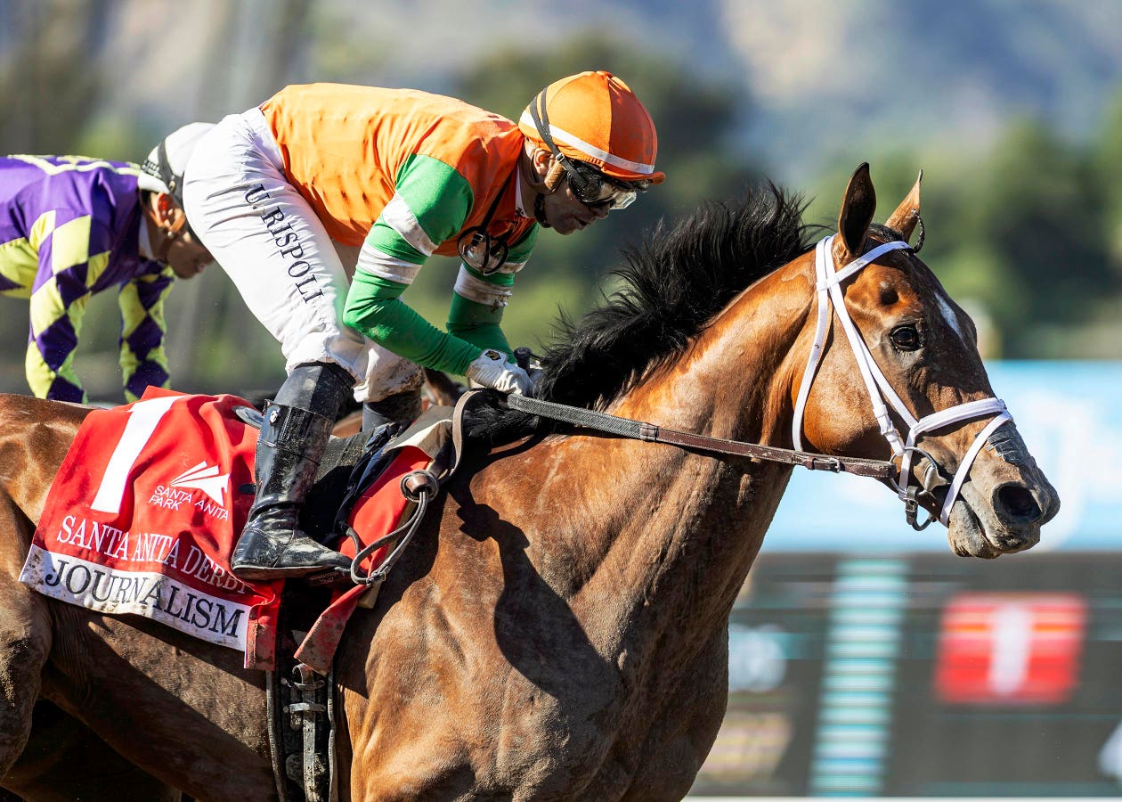 Journalism, the reigning hot rod of the Class of 2o25 and a likely Kentucky Derby favorite, overcame considerable trouble mid-race to take what most players had thought was his due, the hundred-point victory in the Santa Anita Derby on April 5. It had also been thought that the short five-horse field would not provide much trouble in the way of traffic. But, much like Journalism’s textbook demonstration of tactical speed and his burnished professional rally to the wire, the fact that traffic became such a powerful factor in the five-horse race came somewhat unexpectedly.