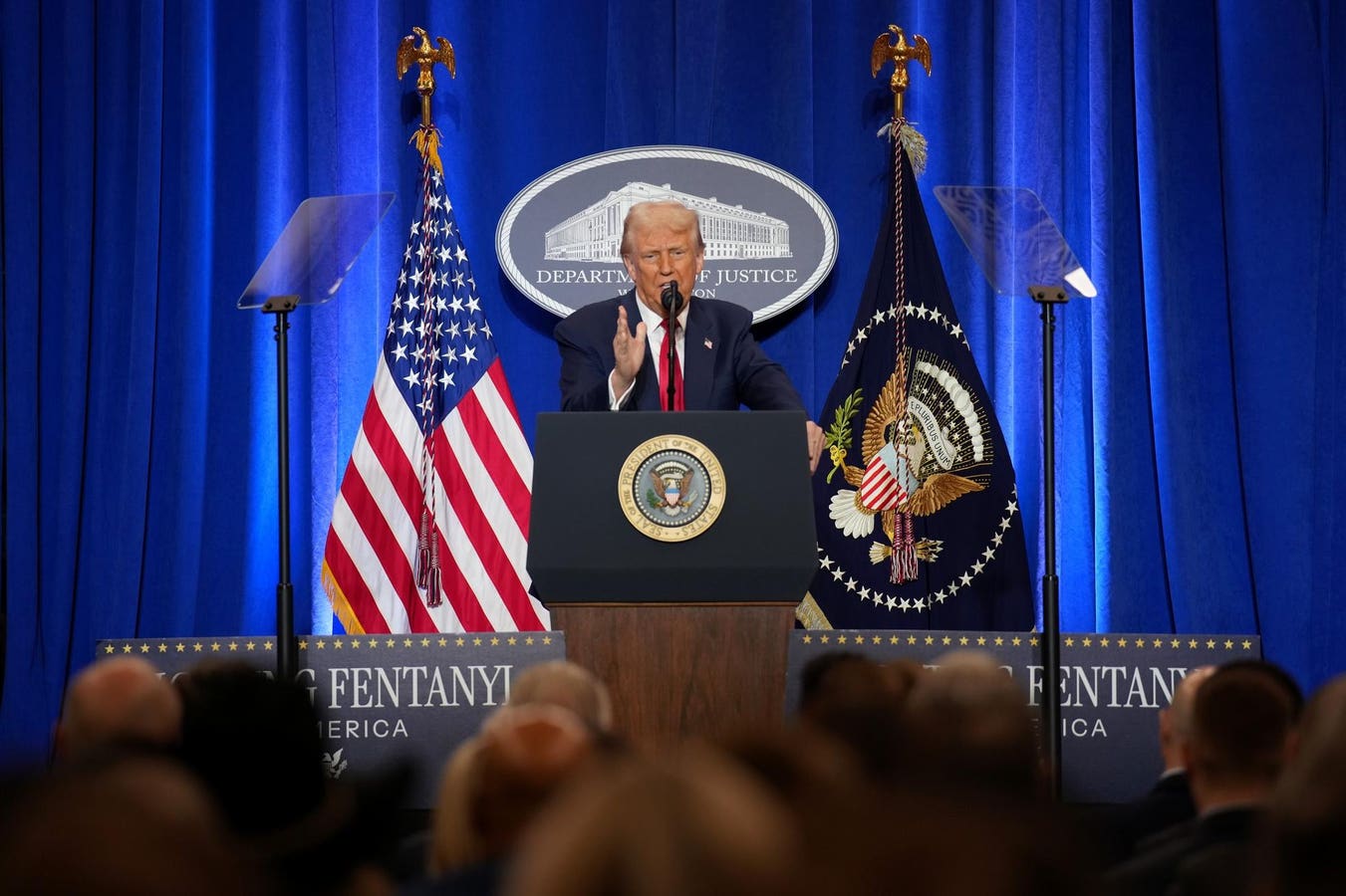 WASHINGTON, DC – MARCH 14: U.S. President Donald Trump speaks at the Justice Department March 14, … More