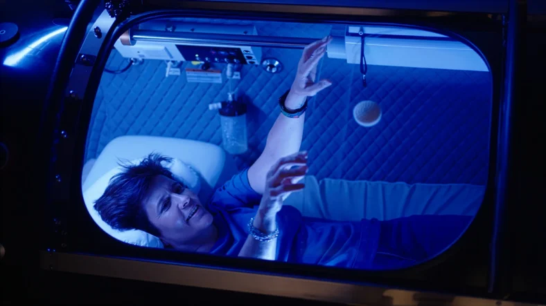 A trailer shows Swisher sitting down with OpenAI CEO Sam Altman, pressing him on his assertion that AI will be able to cure most diseases by 2035. She skeptically eyes a hyperbaric chamber with Blueprint founder Bryan Johnson of “Don’t Die” fame, undergoes red light therapy and straps into an exoskeleton, a wearable robotic device that can help people with mobility issues.