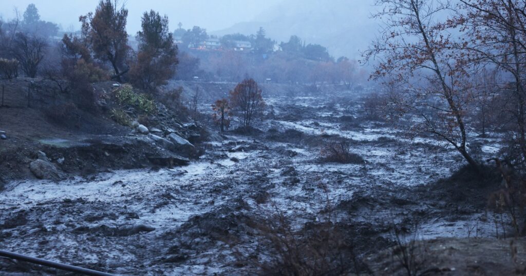 Fast-rushing debris flows raced down the streets of hilly residential communities in Altadena and Pasadena in the storm, according to videos by the Altadena Mountain Rescue.
