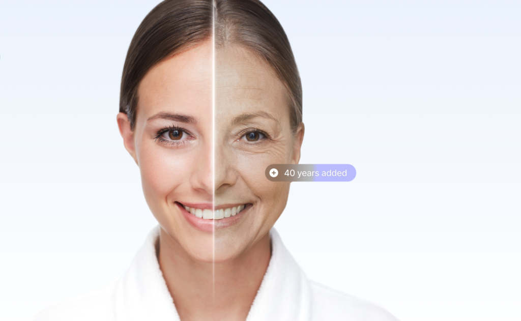 The program first estimates a user’s perceived age, then generates hyper-realistic visualizations of how their face might evolve as the user adds or subtracts years. Users can toggle between two options: Skin Aging Mode, focused solely on dermatological changes, and Full-Face Aging Mode, which adds elements like hair graying, UV damage and weight-related shifts.
