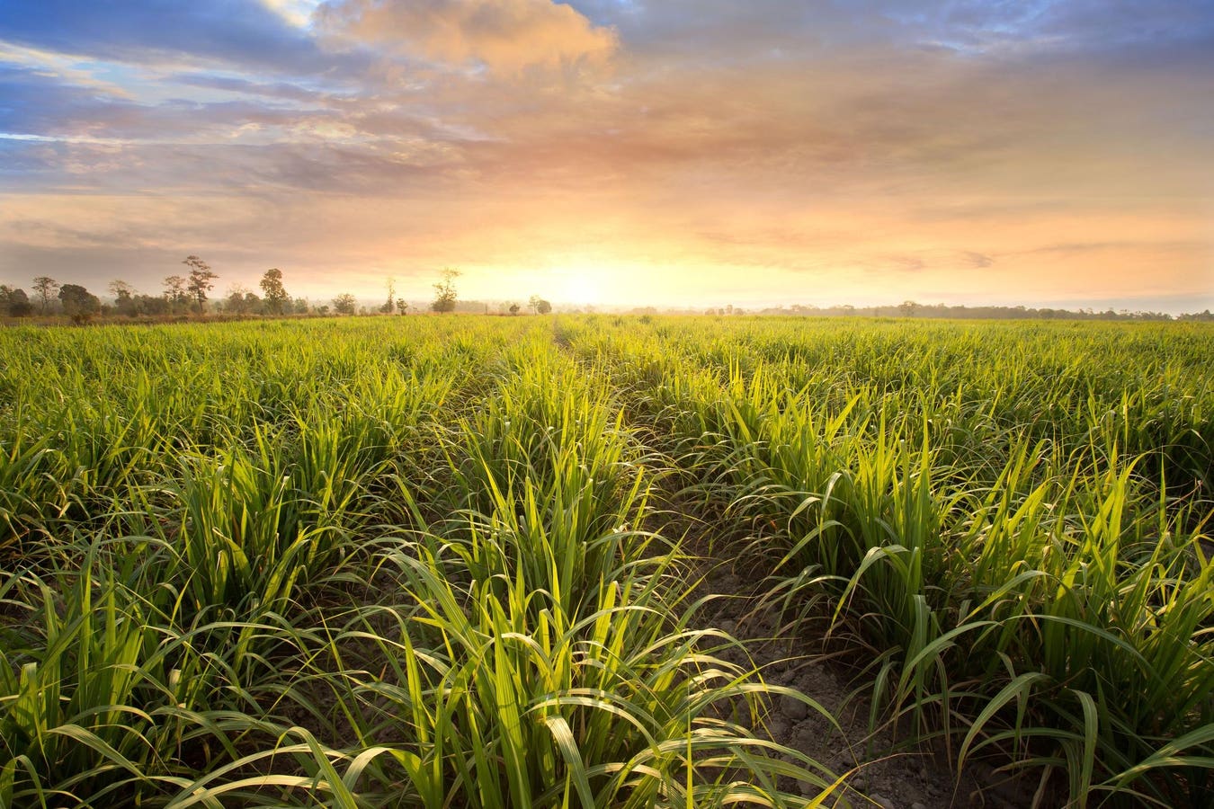 Sugarcane field at sunset.