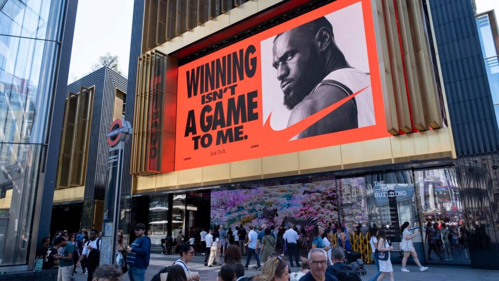 Sportswear company Nike advertising on a large scale digital billboard on the exterior of the … More
