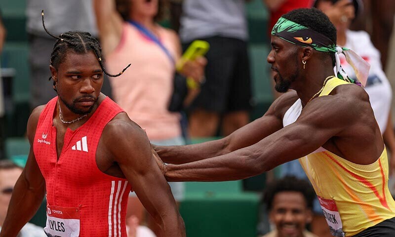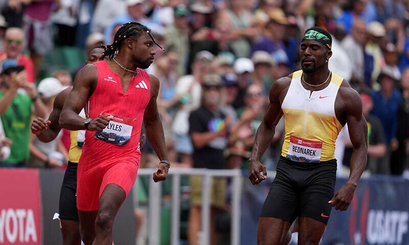 EUGENE: Noah Lyles surged past Kenny Bednarek to win a heated 200-metre race in a world-leading time at the USA Track and Field Championships on Sunday, turning to stare down Bednarek as the sprint rivals crossed the finish line.