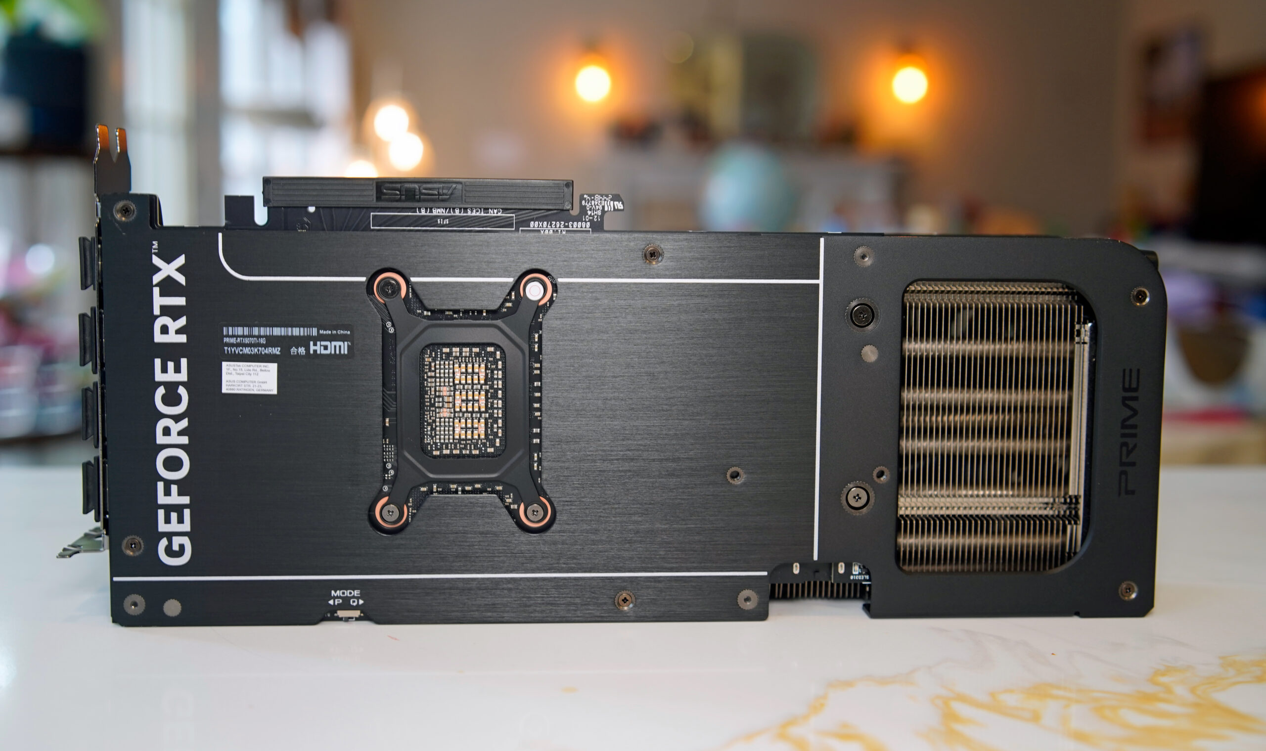 Our ASUS 5070 Ti card is fairly nondescript, with three fans, a plastic frame and a standard heatsink design. You can choose between performance and quiet BIOS modes, which only changes how aggressive the fans are. Its 2.5-slot design makes it tiny enough for small form-factor cases, though I noticed it was actually slightly larger than the RTX 5090 Founders card.