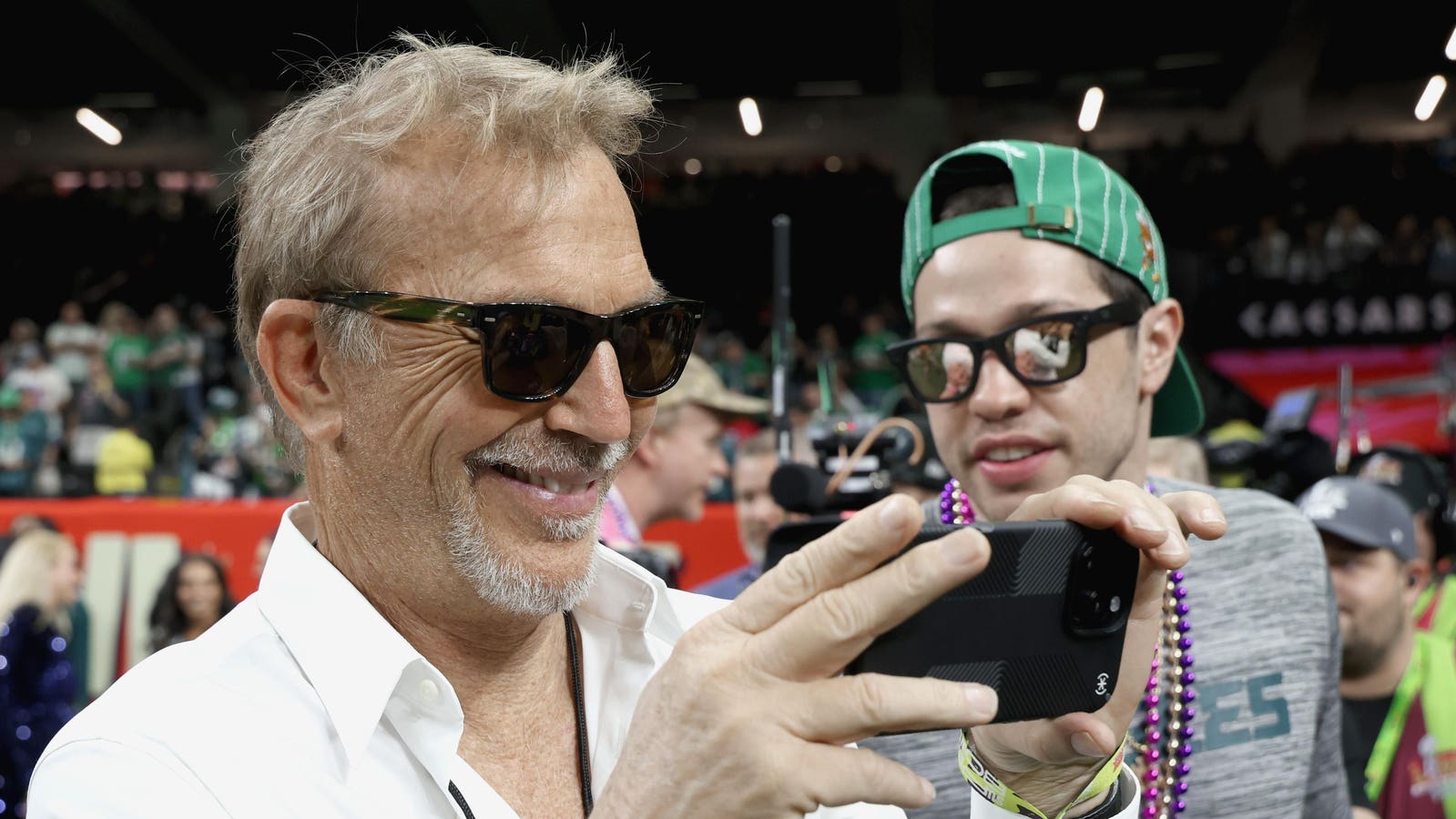 NEW ORLEANS, LOUISIANA – FEBRUARY 09: (L-R) Kevin Costner and Pete Davidson attend the Super Bowl … [+]