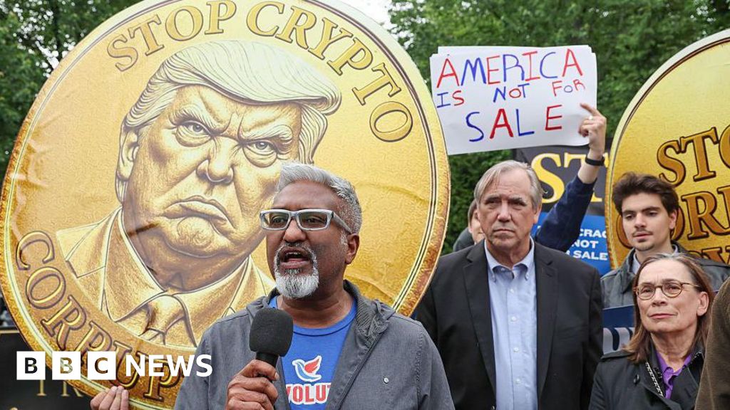 Getty ImagesUS President Donald Trump has hosted top purchasers of the cryptocurrency that bears his name at a gala dinner, in an event that protesters and his Democrat opponents branded as “corrupt”.