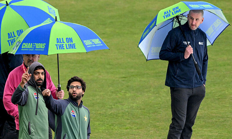 Pakistan’s last Champions Trophy group match with Bangladesh on Thursday was abandoned without a ball being bowled in Rawalpindi because of rain, ensuring the host country’s title defence ended with a wet whimper.