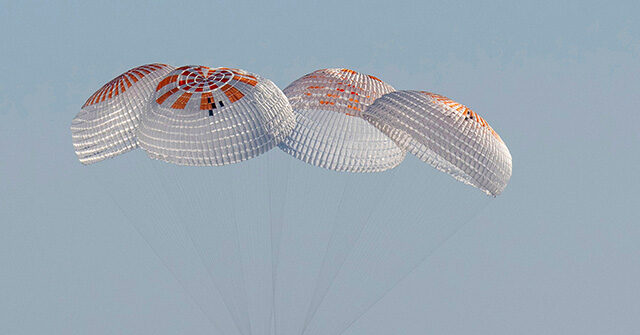 Video footage showed the astronauts, with their parachutes deployed, splashing down.
