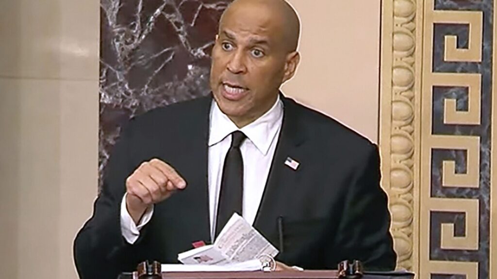 Booker took to the Senate floor on Monday evening, saying he would remain there as long as he was “physically able.” More than 24 hours later, the 55-year-old senator, a former football tight end, was still going. It set the record for the longest continuous Senate floor speech in the chamber’s history, though Booker was assisted by fellow Democrats who gave him a break from speaking by asking him questions on the Senate floor.