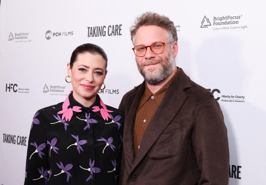 Lauren Miller Rogen and Seth Rogen attend the premiere of “Taking Care” at Harmony Gold Preview … More