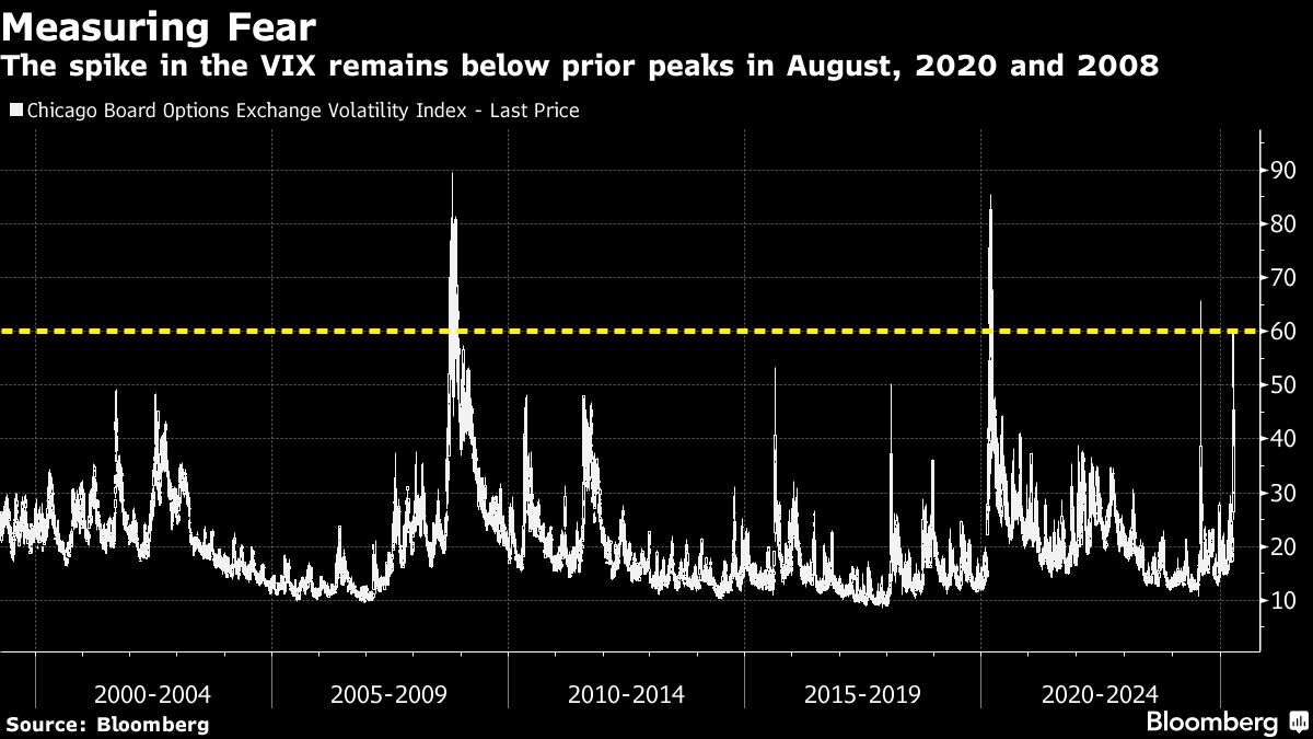 US equity futures gained more than 1%, with Nvidia Corp. leading the Magnificent Seven tech megacaps higher in premarket trading. Apple Inc. climbed about 1% after the iPhone maker’s shares had plunged 19% over the past three trading days, its biggest three-day collapse since July 2001. Treasuries and the dollar were steady.