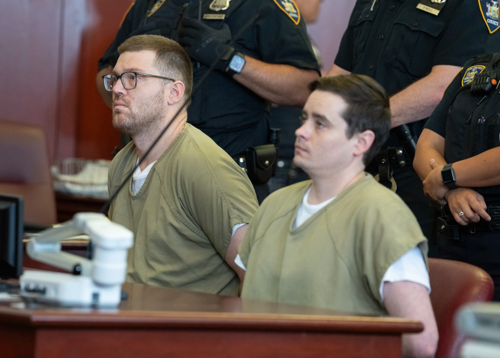 Crypto bros William Duplessie, left, and John Woeltz are pictured in the courtroom of Justice Gregory Carro in Manhattan Supreme Court Wednesday, July 23, 2025 in Manhattan, New York. (Barry Williams/New York Daily News)