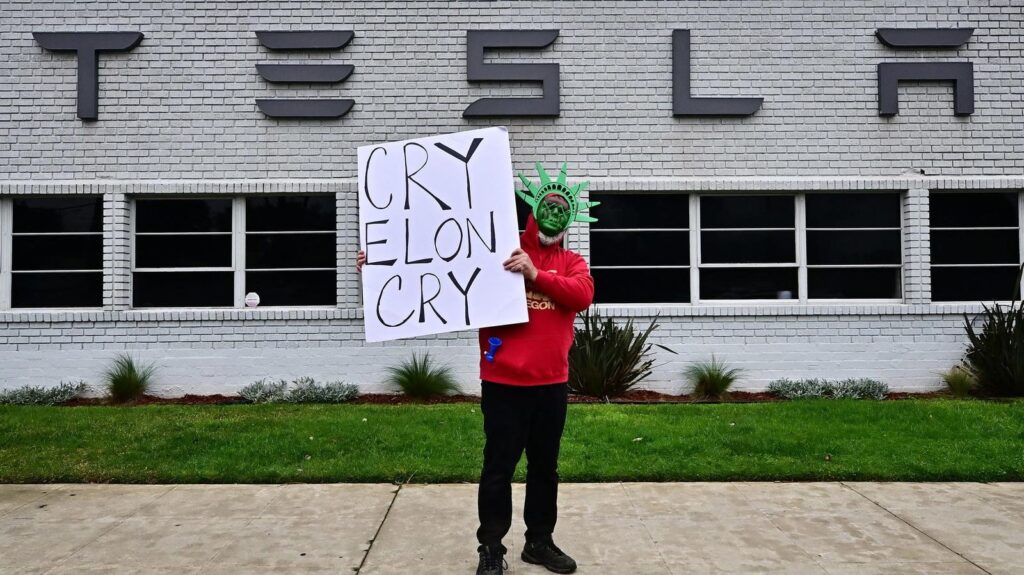Tesla showrooms have faced a spate of protests in recent weeks.