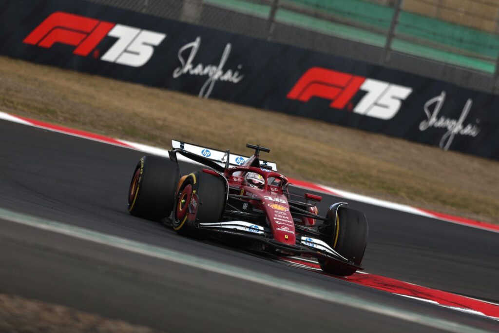 SHANGHAI, CHINA – MARCH 23: Charles Leclerc of Monaco driving the (16) Scuderia Ferrari SF-25 on … More track during the F1 Grand Prix of China at Shanghai International Circuit on March 23, 2025 in Shanghai, China. (Photo by Meg Oliphant/Getty Images)