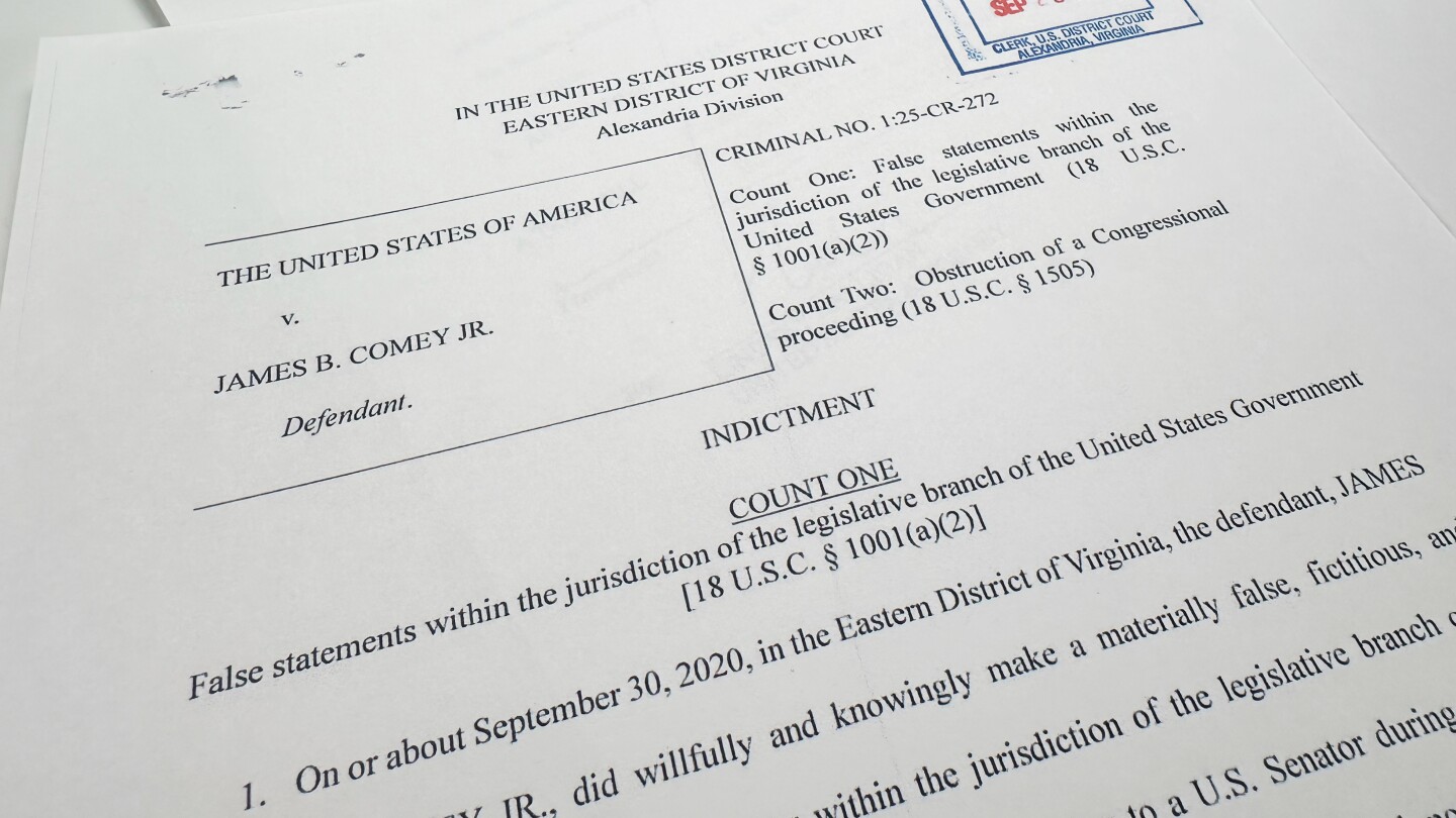 WASHINGTON (AP) — The indictment of former FBI Director James Comey is only two pages and alleges he falsely testified to Congress in 2020 about authorizing someone to be an anonymous source in news stories.