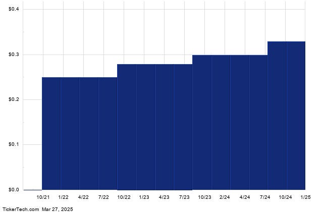 The annualized dividend paid by Concentrix is $1.331/share, currently paid in quarterly installments, and its most recent dividend ex-date was on 04/25/2025. Below is a long-term dividend history chart for CNXC, which the report stressed as being of key importance. Indeed, studying a company’s past dividend history can be of good help in judging whether the most recent dividend is likely to continue.