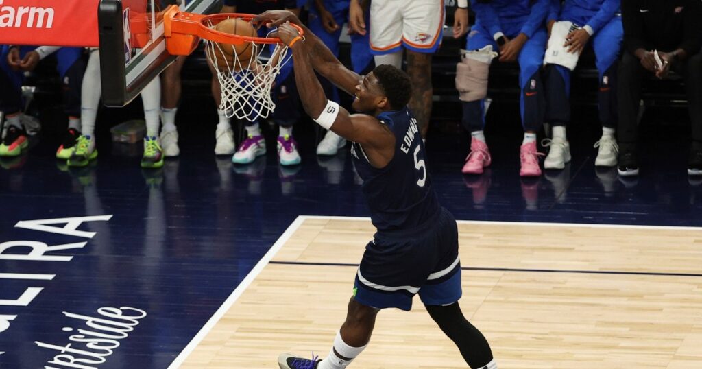 Edwards scored 16 points in the first quarter, outproducing the Thunder as the Timberwolves seized their biggest lead of the series to that point at 34-14.