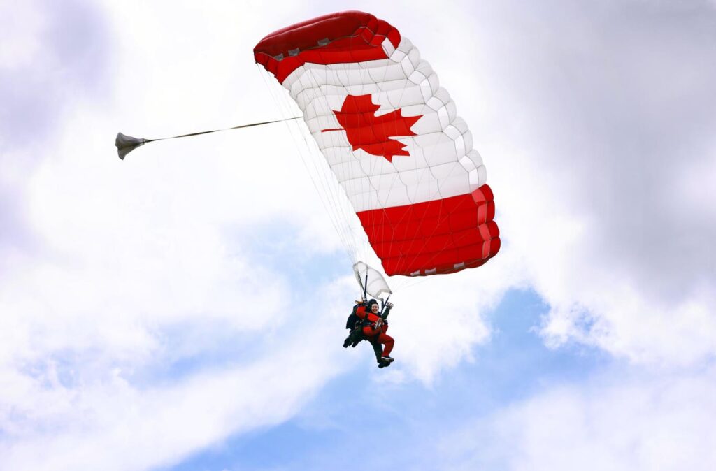 HAMILTON, CANADA – MAY 29: Andie Taylor, wife of Canadian golfer Nick Taylor does a tandem skydive … More