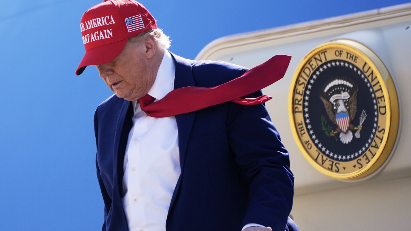 HARRISON TOWNSHIP, Mich. (AP) — Republican President Donald Trump landed in Michigan on Tuesday and shared a hug with a longtime antagonist, Democratic Gov. Gretchen Whitmer, as they appeared together to announce a new fighter jet mission being placed at an Air National Guard base outside Detroit and ease fears that the installation could close.