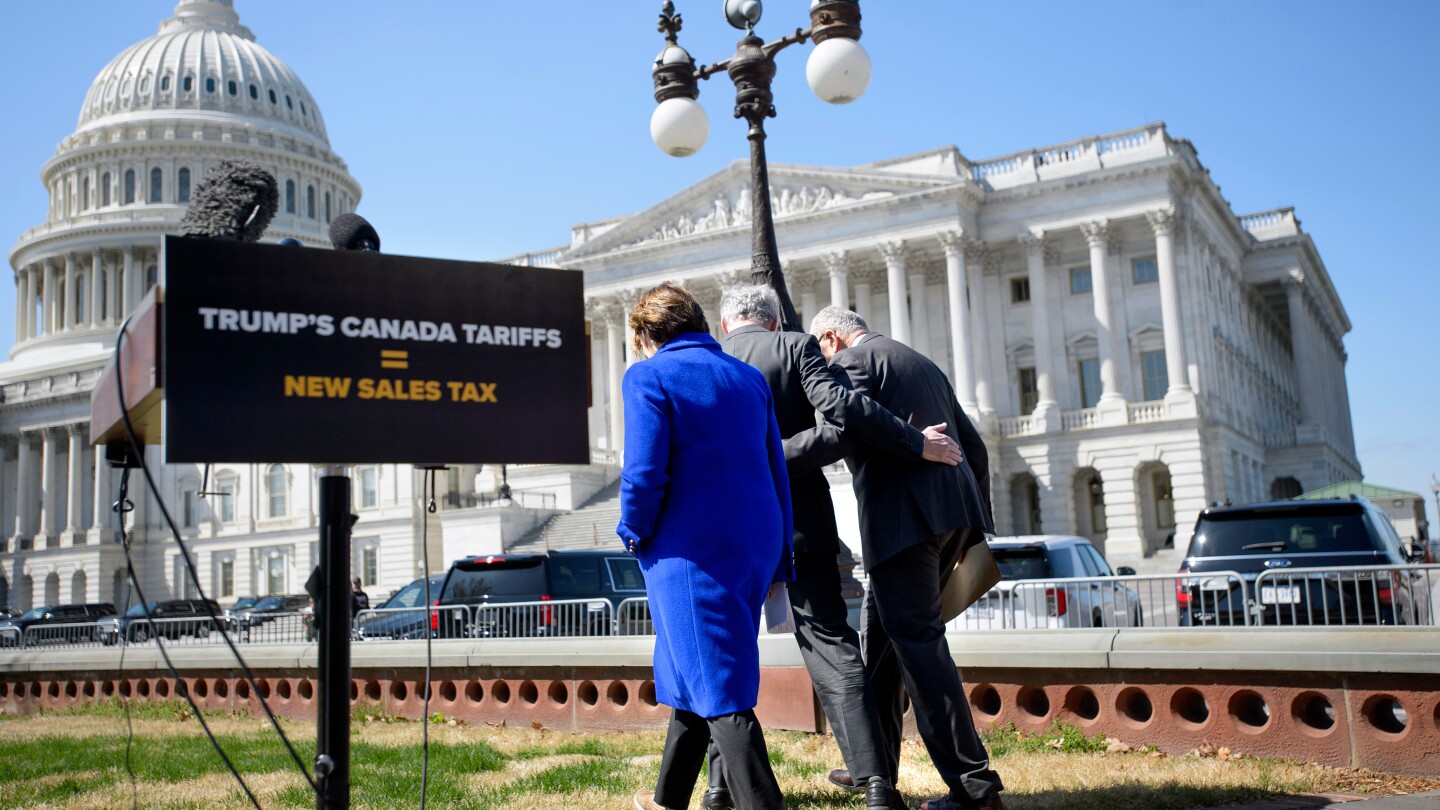 Democrats were highlighting how the tariffs on Canada could make it more expensive to build homes, disrupt industries like shipbuilding and beer brewing and raise prices on imported grocery products.
